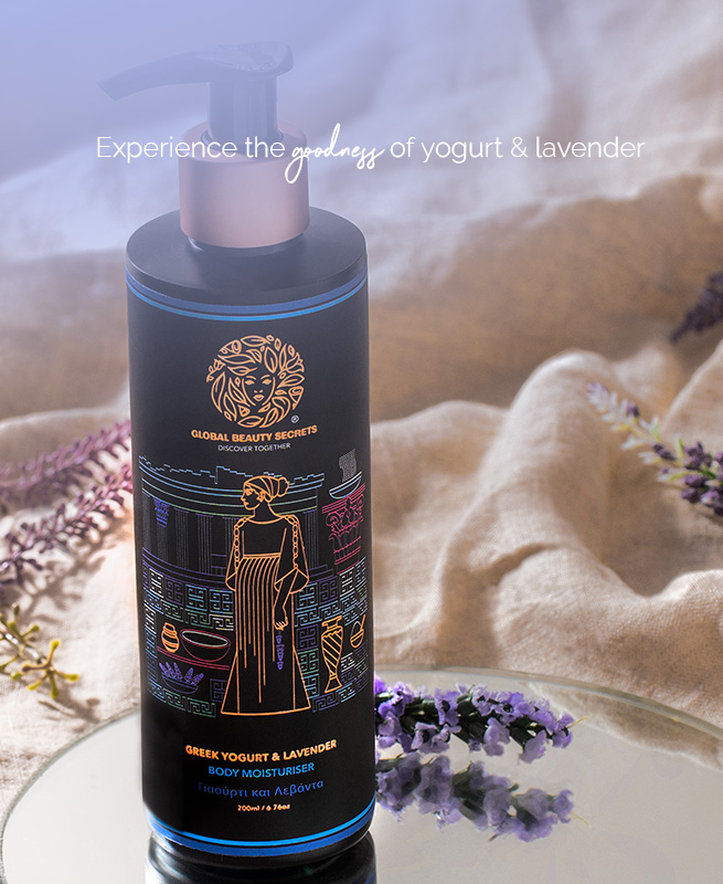 nourished the skin. It was primarily used to relieve the skin against sunburns. Lactose, proteins, vitamins, and minerals are all found in yogurt, which can soothe sunburn and shed dead skin cells. Yogurt and Lavender are deeply interlaced in the Greek culture and were apart of the daily life style during ancient times. Lavender was known as
