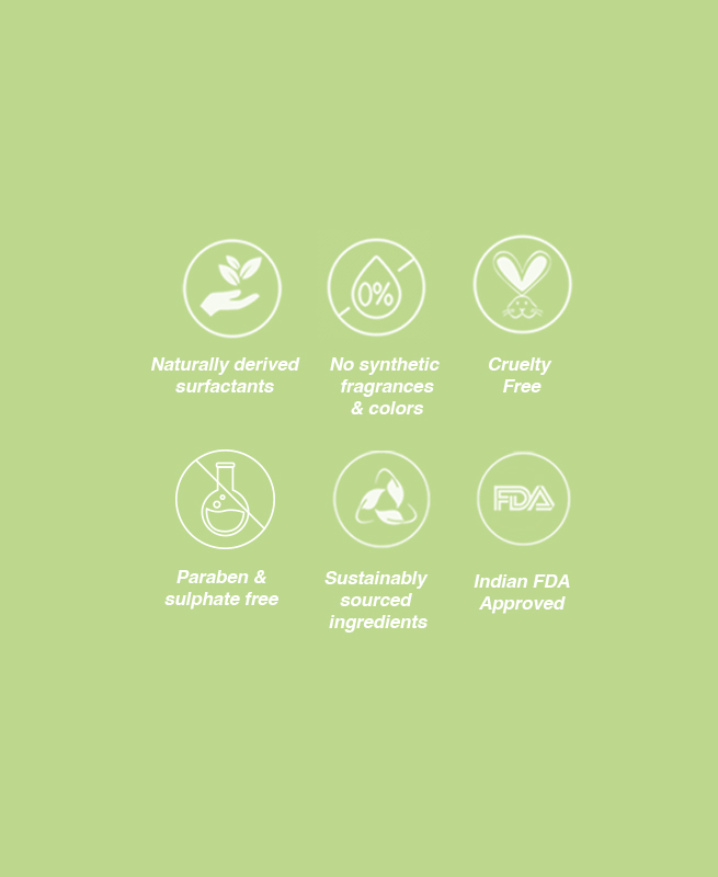 Not Tested on animals   •   Biodegradable Packaging   •   100% Veg Ingredients   •   Made in India   •