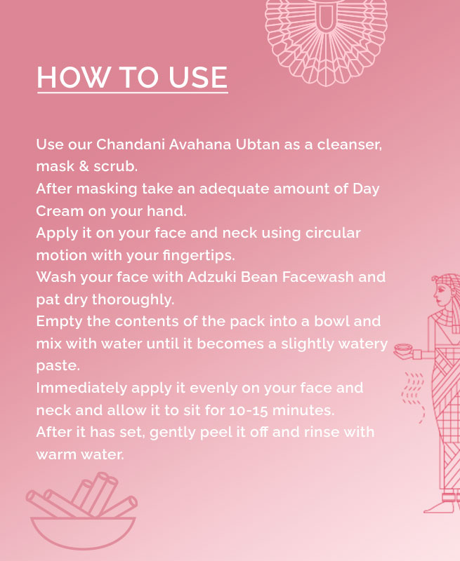 • You can use our Chandani Avahana Ubtan as a cleanser, mask & scrub.